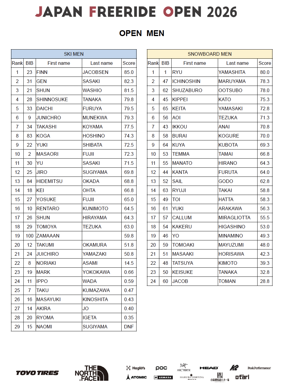 OPEN (MEN, Ski)